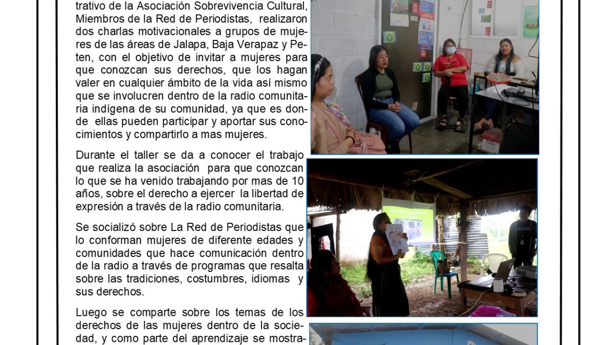 Asociación Sobrevivencia Cultural a traves del boletin informativo No. 73 «TODOS HABLAMOS» comparte información relevante sobre algunas de las actividades que se llevaron a cabo por el personal administrativo, La Red de Comunicadoras y de los miembros de algunas radios comunitarias durante el mes de diciembre.