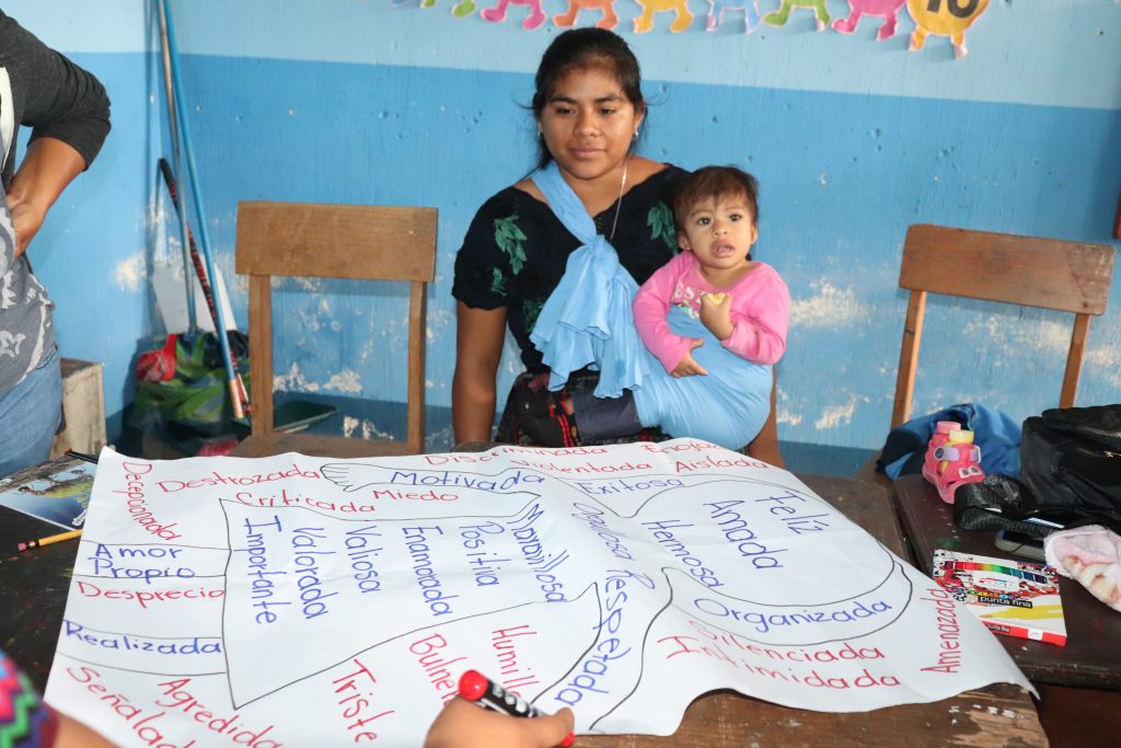 En la reunión del área de Purulha se contó con un traductor ya que las participantes solo hablan su idioma materno que es Achi, gracias al apoyo de los representantes de las radios comunitarias de las comunidades visitadas se pudo lograr realizar la actividad con mucho éxito.