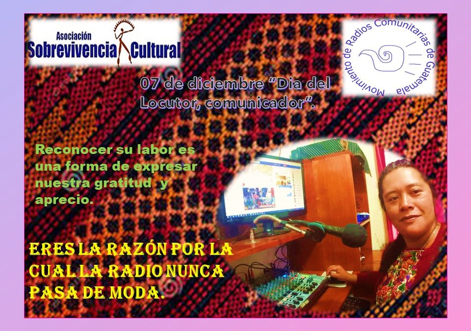Cada 7 de diciembre en Guatemala se celebra el «Dia del Locutor», más que un trabajo es una pasión para quienes están dentro de una cabina alegrando a grandes y pequeños, en especial a las y los comunicadores de radios comunitarias ya que son la voz del pueblo.