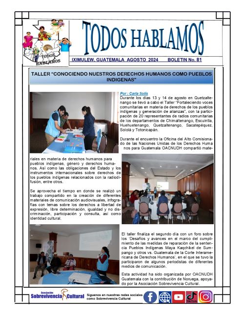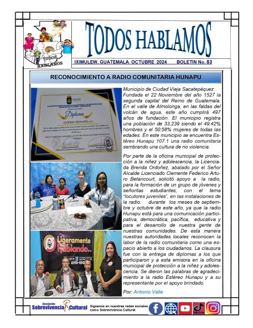 Compartimos el boletín informativo «TODOS HABLAMOS» número 92 con informacion relevante sobre actividades llevada a cabo por miembros de la Red de Comunicadoras Indígenas de Guatemala.