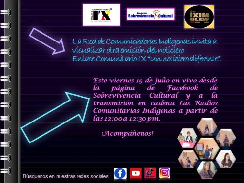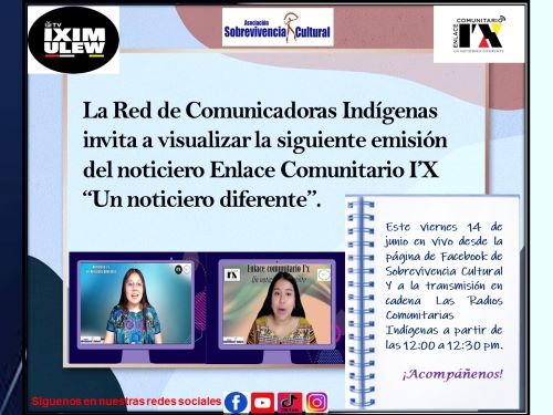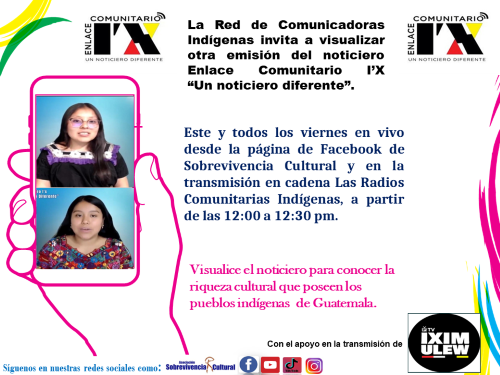 Enlace Comunitario I’X «Un noticiero diferente» una producción de La Red de Comunicadoras Indígenas de Guatemala, visualicelo este y todos los viernes, a partir de las […]