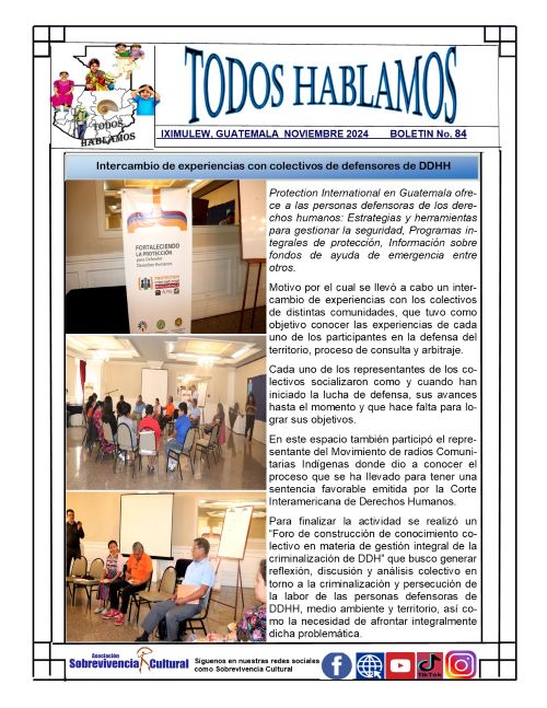 Compartimos el boletín informativo «TODOS HABLAMOS» número 92 con informacion relevante sobre actividades llevada a cabo por miembros de la Red de Comunicadoras Indígenas de Guatemala.